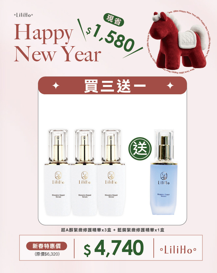 \ 新年買三送一 / 超A醇新生緊緻精華-30ml X 3盒 送 藍銅緊緻修護精華 X 1盒(A醇:有效日期2027.02.23 /藍銅:有效日期2028.02.24),LiliHo 梨梨荷|日日好嚴選質感生活好物