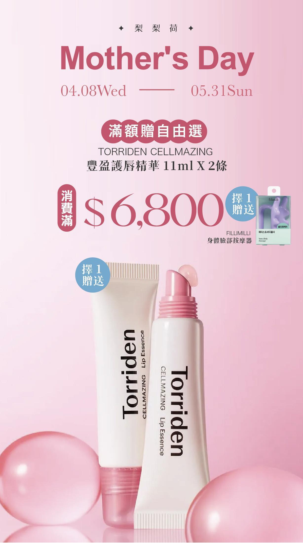 寵后盛宴|滿$6,800 贈送Torriden CELLMAZING 豐盈護唇精華 11ml X 2條,LiliHo 梨梨荷|日日好嚴選質感生活好物