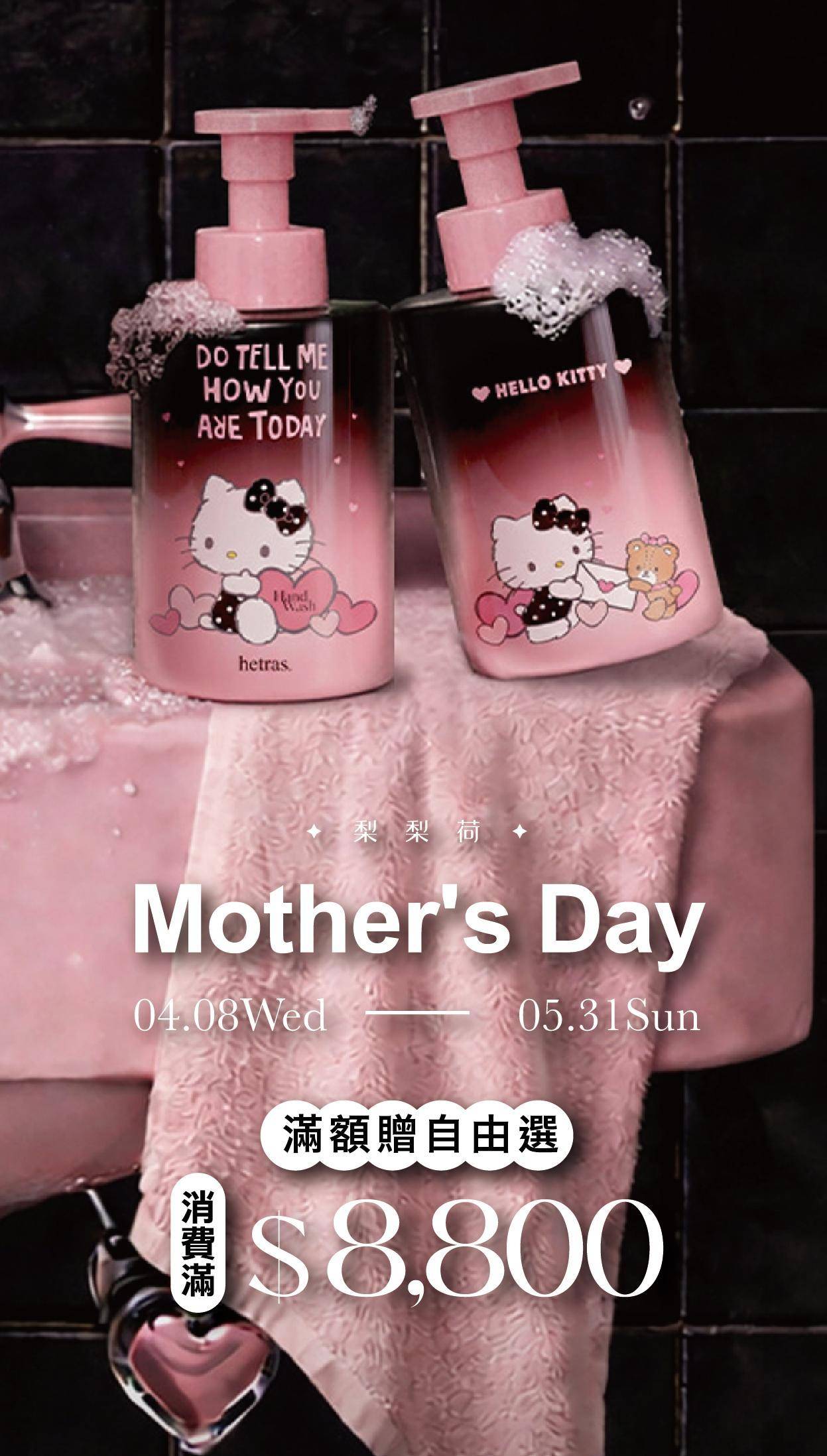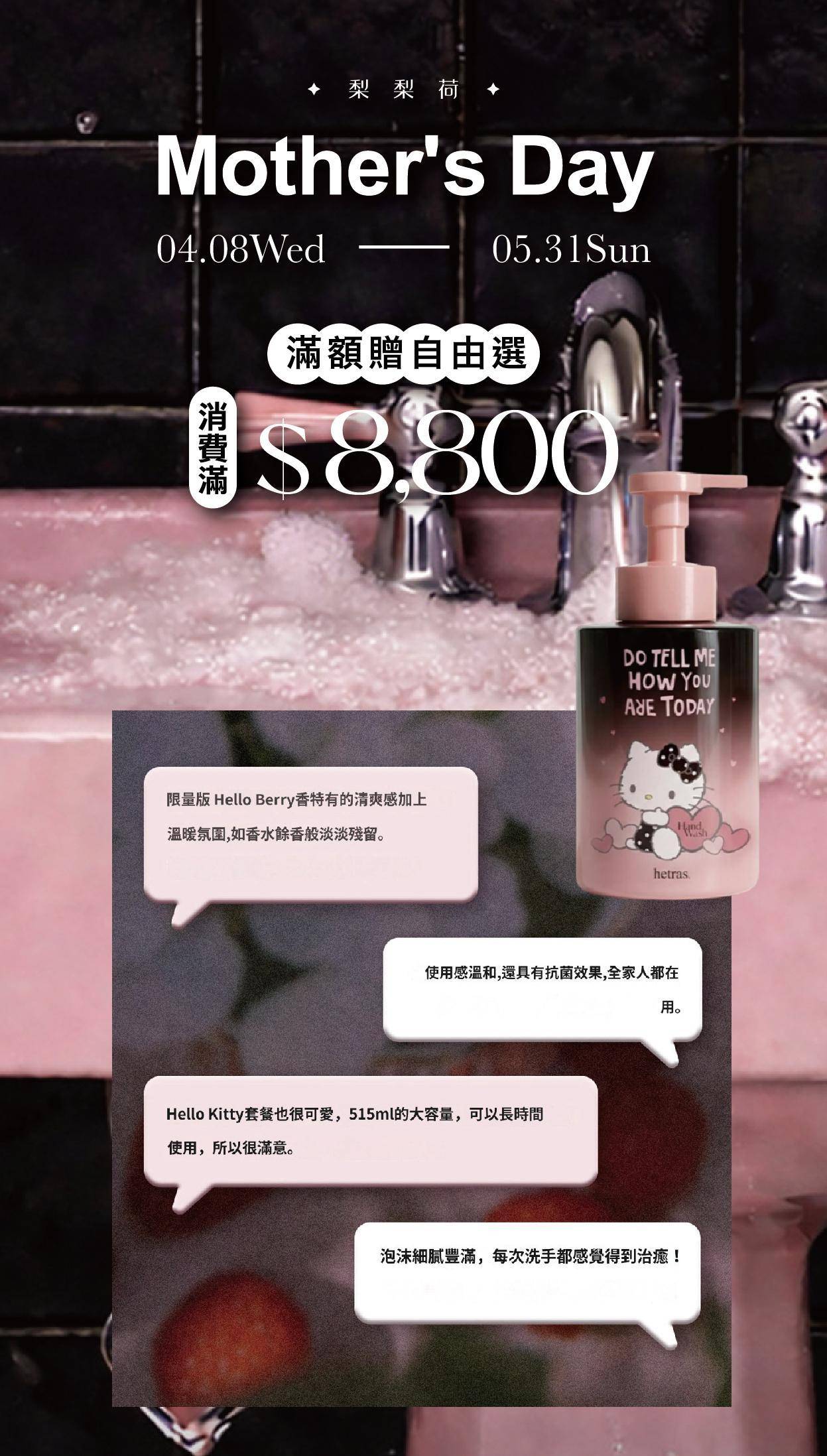 寵后盛宴|滿$8,800 贈送Hetras × HELLO KITTY 聯名洗手慕斯 515ml*1,LiliHo 梨梨荷|日日好嚴選質感生活好物